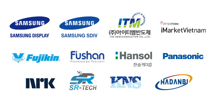 Hiện tại, chúng tôi là nhà cung cấp chính cho một số khách hàng lớn như : Samsung SDV, Samsung SDIV, Samsung SEV, ITM Semiconductor, NRK, Hadanbi, SR Tech…